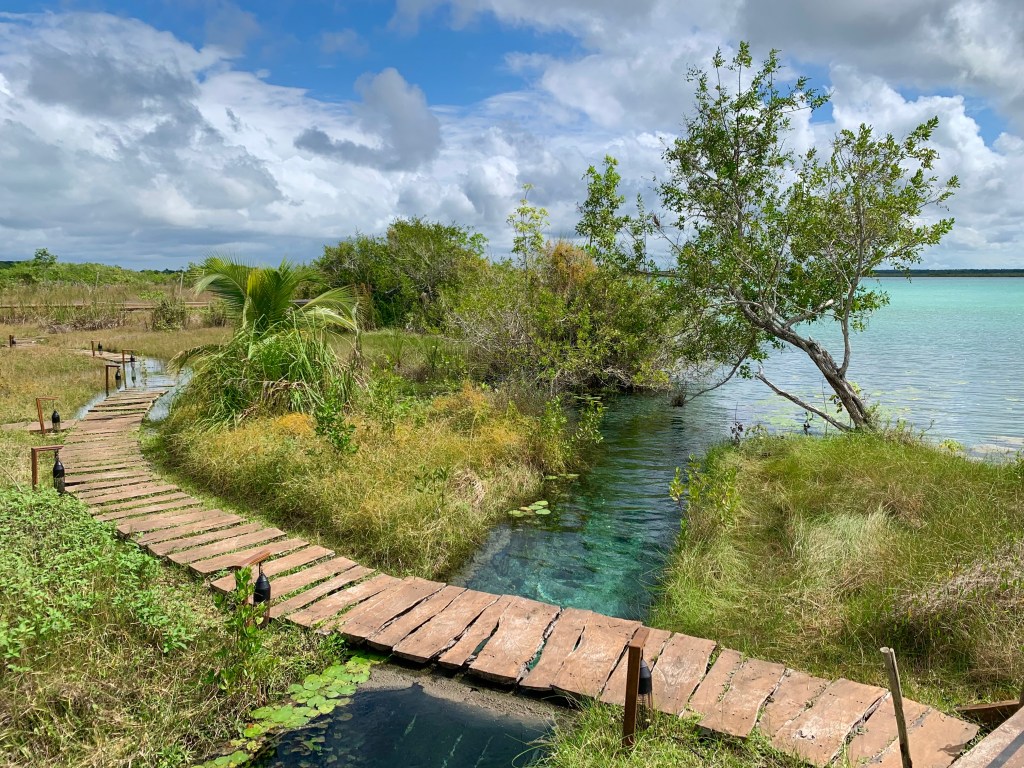 Close to the border of Belize lies the small town Bacalar on la laguna de los siete colores – the lagoon of seven colors. Technically not a lagoon but a lake, Bacalar is a long, narrow body of freshwater consisting of seven cenotes, fed by underground rivers. With its crystalline waters in eclectic hues of blue and green, Bacalar is often referred to as the Maldives of Mexico. Compared to the busy resorts of Cancun and Tulum, this is a true hideaway in what feels like a masterpiece of art created by nature. This is where we found paradise.